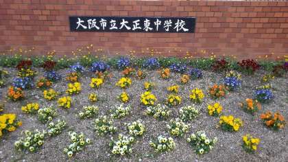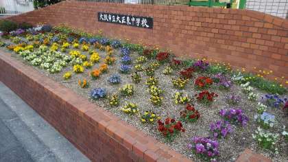 元気アップの皆さんにお世話いただいている、玄関のお花がきれいに咲いています。