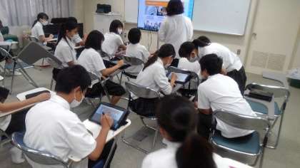 新型コロナウィルス感染予防のため、マスクを常時着用し、タブレットを共有するため授業後の手洗いを徹底するなどの必要がありますが、生徒の皆さんはとても盛り上がっていました。