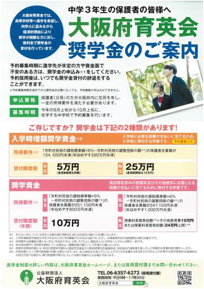 大阪府育英会 奨学金 予約募集 のご案内