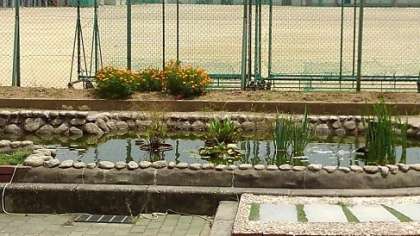 二つ目の記事の最初の写真は、池の周りのきれいに剪定された松です。
