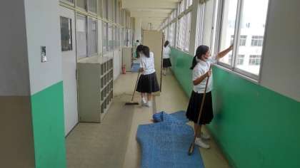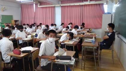 今日は、午前中に4時間授業を行い、給食後に終業式を行いました。