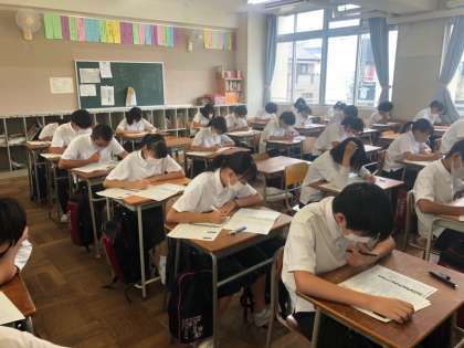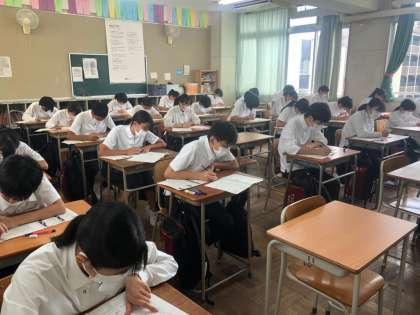 2年生は1学期の期末テスト以降に習ったことや、夏休みの宿題から出題された「学力テスト」に取り組んでいます。