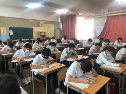みんな真剣な顔で試験を受けています。
