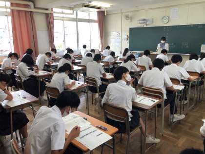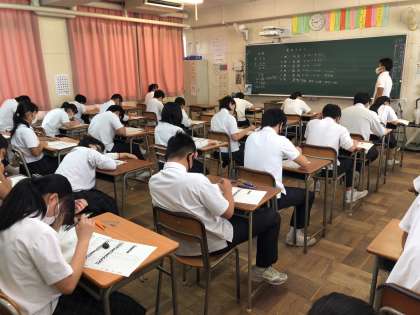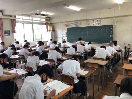 本日、1時間目から5時間目まで、社会・英語・国語・数学・理科の順に実力テストを行いました。いつも以上に緊張感をもって、テストにのぞんでいました。