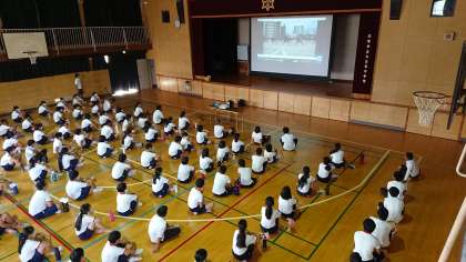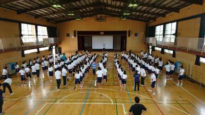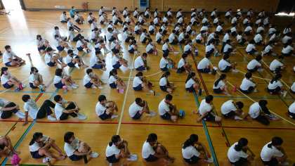 今年度の団体演技は「ソーラン節」です。去年の先輩の演技を見てから、今日はほんの少し全員で踊りました。良い雰囲気で一回目の練習を終えることができました。これから練習を重ねて、3年生が自信をもって最高の団体演技を披露することができるように頑張ります。