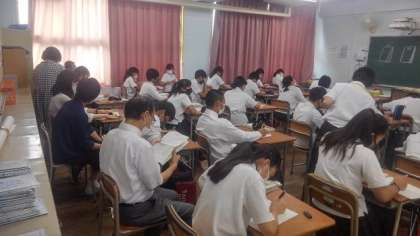 今日は、5時間目に2年5組で美術の研究授業が行われました。