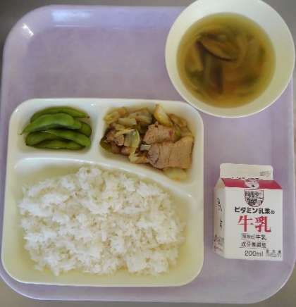 ごはん 牛乳 ホイコウロー 中華スープ えだまめ