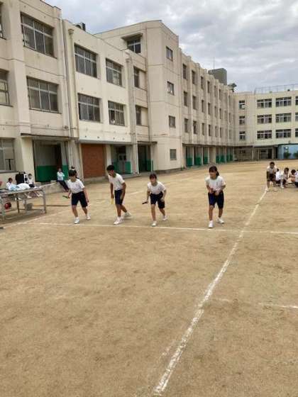 1年生は1.2時間目に体育大会の学年練習を行いました。