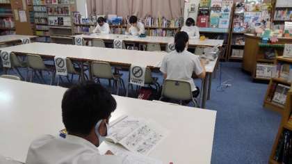 本日四時から、本校図書室で英検学習会が行われました。今日は、3級受検者が対象です。みんな、真剣に取り組んでいました。