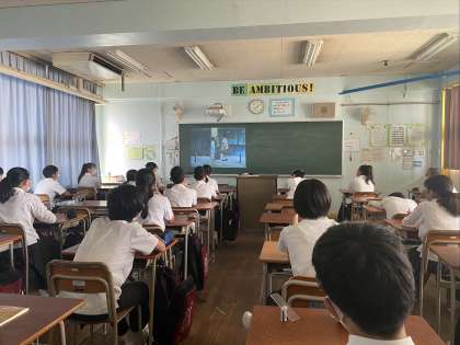 5時間目には、京都アニメーション制作の「残された名刺〜ある在日一世の軌跡」を視聴しました。6時間目はその内容を踏まえて、Teamsで共有されたパワーポイントを見ながら、戦時中に日本と朝鮮半島との間に起こった悲劇や現代社会にもつながる人権問題についての講義を受けました。