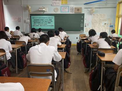 5・6時間目にオンラインツール「Microsoft Teams」を活用して、各教室で平和学習を行いました。