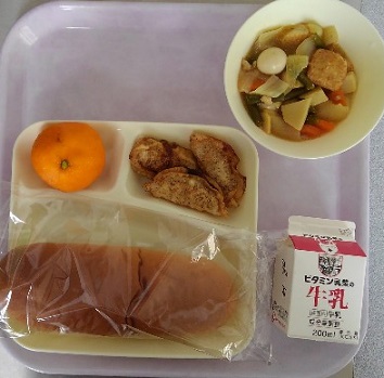 パン 牛乳 あげぎょうざ 中華煮 みかん(冷)