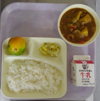 ごはん 牛乳 ポークカレーライス[米粉] はくさいのピクルス みかん