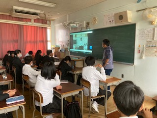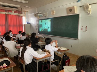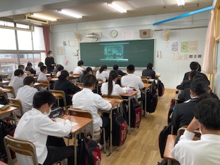 例年は体育館で演説を行いましたが、今年度はコロナウイルスのために、立候補者の演説を事前に撮影し、教室で流す形になりました。