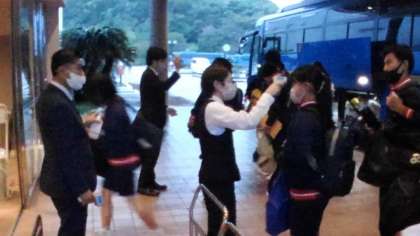 ホテルに到着しました。検温と消毒を済ませて、館内に入りました。