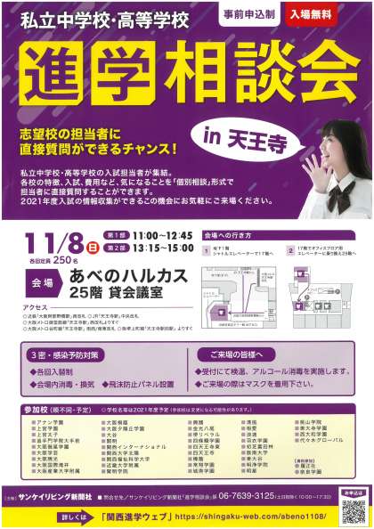 【進路情報】11/8日私立 進路相談会 at 天王寺