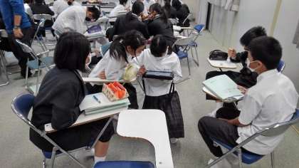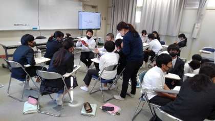 大正東では、教職員の授業力向上のため、全教員が研究授業を行います。今日はトップを切って1年生の数学科の授業がありました。
