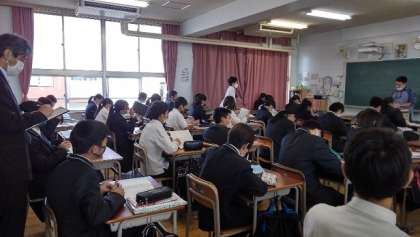 本日も、2時間目の1年1組で数学の研究授業が行われました。