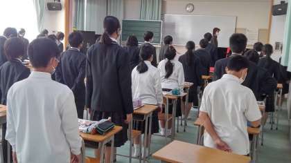今日は文化祭一日目です。朝に放送で開会式を行い、6時間授業のうち各学年2時間を、文化部の発表等の動画の鑑賞と展示の見学に使いました。