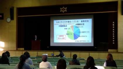 進路指導主事の北村先生より、今年度の進路についてお話していただきました。