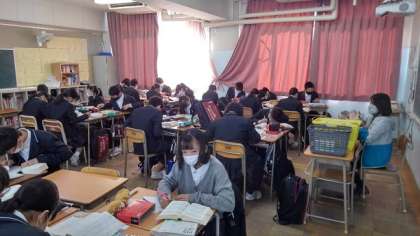 今日は、三年生の実力テストでした。三年生の皆さん、お疲れさま。