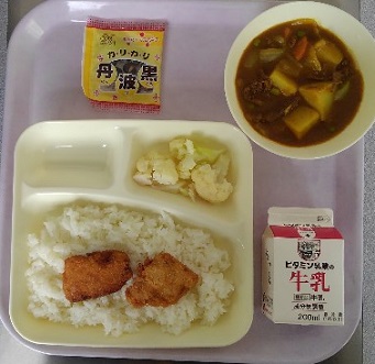ごはん 牛乳 カツカレーライス カリフラワーのピクルス いり黒豆