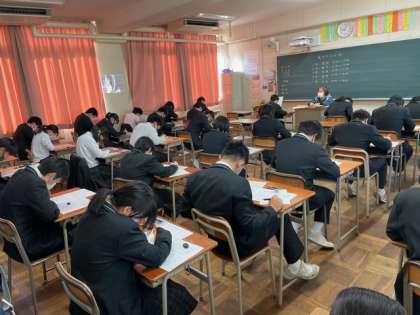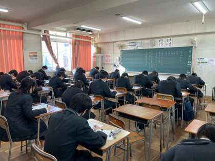 本日、3年生は実力テストを実施しました。集中して取り組んでいます.