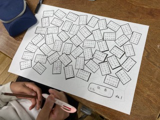5時間目に各教室で百人一首の練習を行いました。対面での活動が規制されているので、teamsで各教室を繋いで、読み上げられた札を配布されたプリントの中から探すという形で取り組みました。