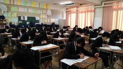 本日、第5回実力テストの2日目を実施しました。教科は理科、社会です。昨日に引き続き、落ち着いてテストに向かっていました。
