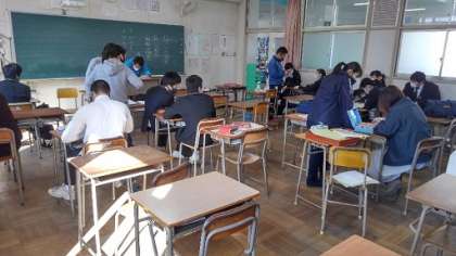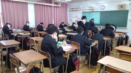 今日は、大阪の私学受験一日目でした(別記事あり)。明日も、面接などがある人は気を抜かないようにしましょう。本日受験しなかった3年生は、登校して2時間、公立高校受験用の自己申告書の作成に取り組みました。