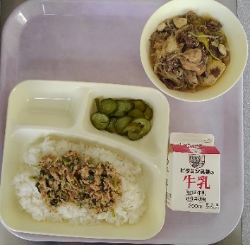 ごはん 牛乳 すき焼き煮(近江牛) きゅうりのゆずの香あえ ツナっ葉いため