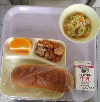 パン 牛乳 とうふのミートグラタン 押麦と野菜のスープ煮 デコポン