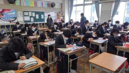 今日は、3年生は前日の入試対策テストの解説が行われました。(1〜5時間目)