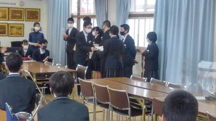 3年生の後期学級委員長に、生徒会から感謝状が贈られました。