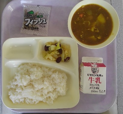 ごはん 牛乳 チキンカレーライス ビーンズサラダ ミニフィッシュ