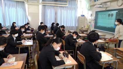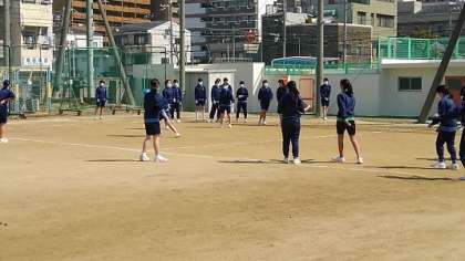 1,2年生の体育の授業は、体育館が使えないので、男女ともグランドで行っています。女子は、ドッチボールです。「わー、わー」と元気な歓声が聞こえていました。