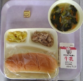 パン 牛乳 豚肉のガーリック焼き スープ サワーソテー バター