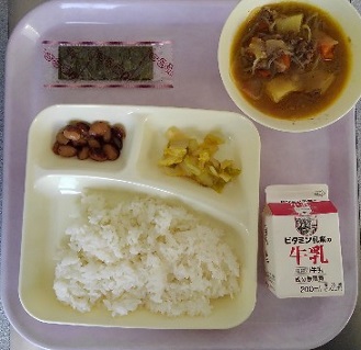 ごはん 牛乳 肉じゃが はくさいのゆず風味 とら豆の煮もの 焼きのり(中)