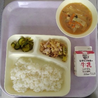 ごはん 焼きとり みそ汁 きゅうりのゆず風味 牛乳