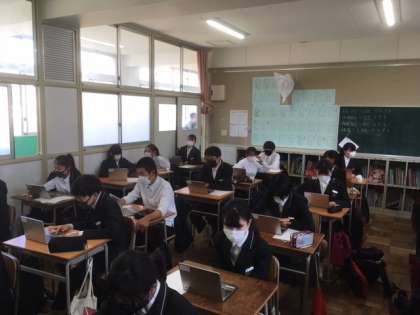 本日、3年生は学習者用端末(タブレット型PC)の使用準備を行いました。