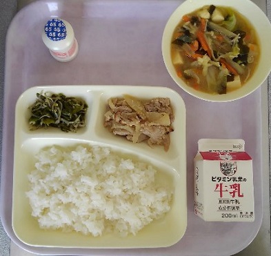 ごはん 牛乳 豚肉のしょうが焼き みそ汁 じゃこピーマン 発酵乳(中)
