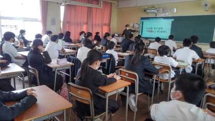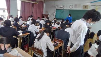明日からの登校時間等に変更があります。今日配付したプリントを確認して、遅刻や忘れ物をしないようにしてください。