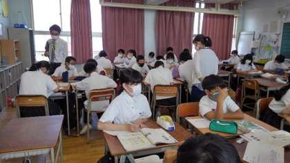 昨日の学校の様子です。全校集会があり、教育実習生の研究授業があり、1年生は薬物乱用防止教室がありと、盛りだくさんな一日でした。