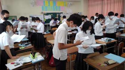 さて、午後からの部活動では、どのクラブも元気よく活動していますが、水分補給は早めにして熱中症の予防をしましょう。(ここも毎回同じようなことを書いています。でも、大変な事態にならないように、一人一人が自分の体調を管理しましょう)