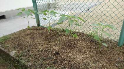 先日、玄関や中庭の花壇を記事にしましたが、雨の日も多くぐんぐん育っています。真ん中の写真はひまわりですが、8月が楽しみです。