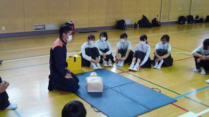本日大正消防署の職員に来ていただき、救命救急法についての研修をしていただきました。