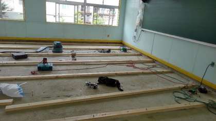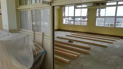 2年生校舎の普通教室の床の張替え工事が始まりました。これで、普通教室の床はすべて張替えが終了します。