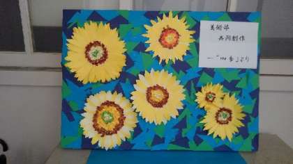 校長室前に、夏らしいひまわりの花を題材とした作品を飾ってもらいました。美術部の皆さん、ありがとうございます。