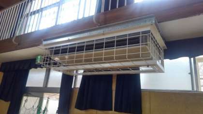 夏休み期間に体育館へのエアコン設置の工事が行われていましたが、本日終了しました。明日からは、体育館の使用ができます。体育館部活動の皆さんには不自由な思いをさせましたが、今後は本校体育館での活動ができます。