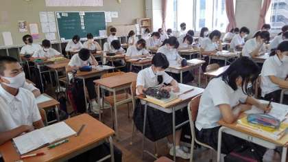 今日から授業が始まりました。とても暑い一日でした。明日も暑くなりそうです。熱中症に気を付けましょう。
